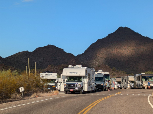 From all over the country, including Canada, about 25 RVs rolled into the Twin Peaks Campground at Organ Pipe Cactus National Monument, just five miles from the border—a scenic spot to huddle up for the night and prep for the big adventure. The air buzzed with a mix of excitement and oh-my-gosh-what-have-I-gotten-myself-into vibes. Thankfully, we had several seasoned pros in the group—veteran border-crossers who had done this many times and assured us it was a simple process. We hung onto their every word as they shared their stories and laid out what to expect at the border. Spoiler alert: it sounded a lot more organized and way less terrifying than my Netflix-inspired imagination had cooked up. Yeah, well, we’ll see.
