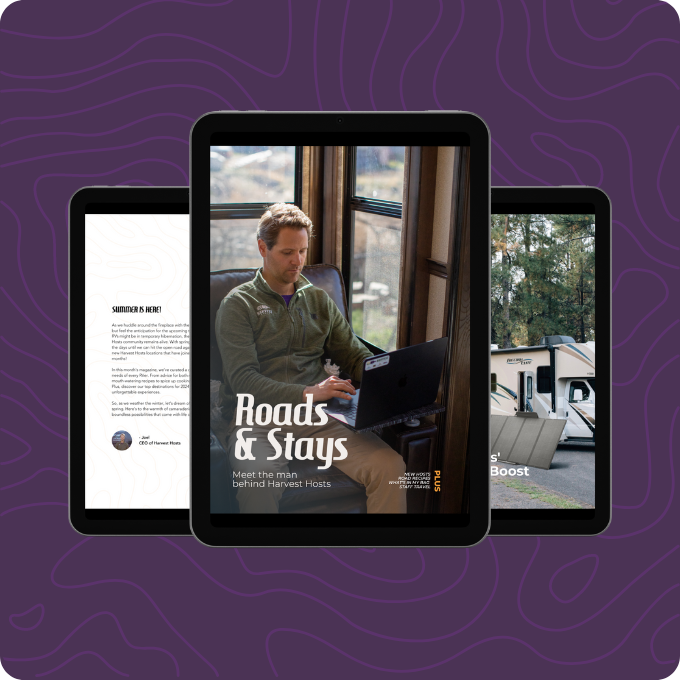 Explore the summer edition of Roads & Stays magazine, featuring unique Harvest Hosts locations from a whiskey distillery in Kentucky to a classic drive-in theater in Virginia. This issue is packed with practical RV storage tips, a guide to different types of RVs, delicious frozen treat recipes, and essential solo travel safety advice. Download now and start your adventure!